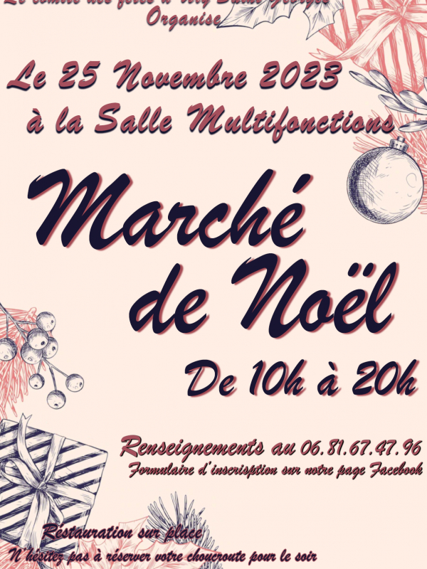 marché de Noël 2025 marché de Noël 2025SAMEDI 6 DÉCEMBRE de 14h à 20hDIMANCHE 7 DÉCEMBRE de 10h à 18hRESTAURATION SUR PLACE Localisation : 60560 ORRY LA VILLE