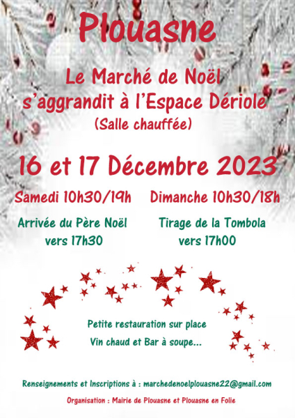 Marché de Noël En intérieur, un marché de Noël convivial de 25 emplacements. Stand gratuit en échange d un lot pour la tombola. Pas de revente. Localisation : 22350 CAULNES