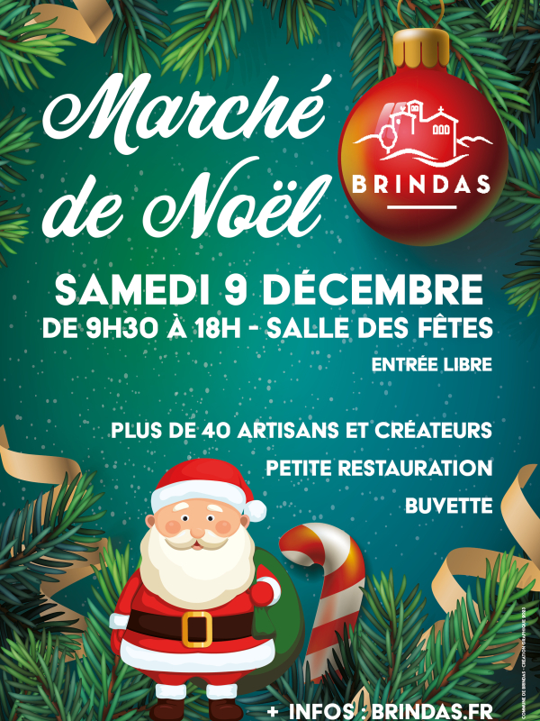 La Mairie de Brindas organise un marché de Noël le samedi 09 décembre 2023 à la grande salle des Fêtes de Brindas, montée de la Bernade de 9h30 à 18h.