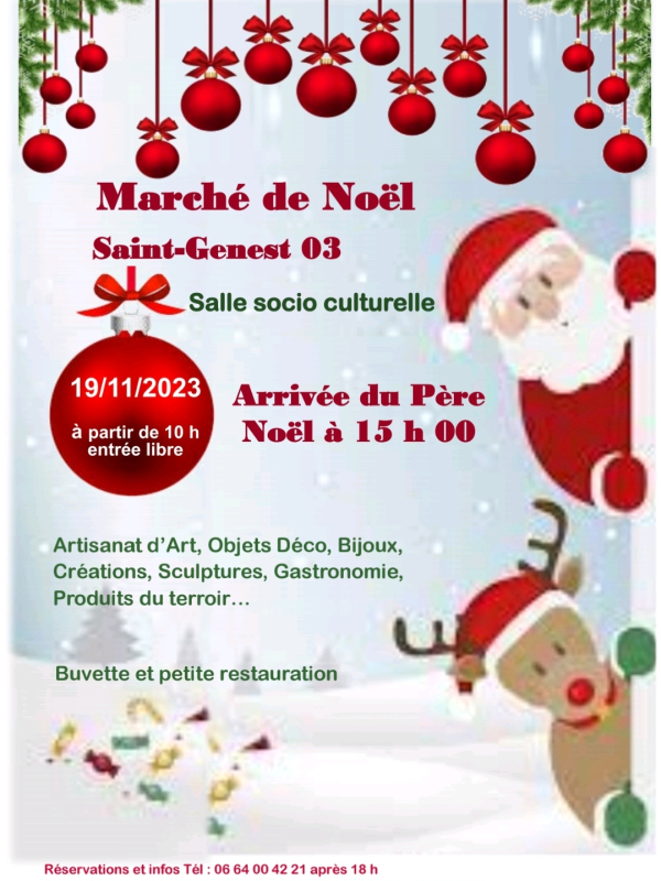 MARCHÉ DE NOËL Venez à notre marché de noël exposer ou en tant que visiteur.Présence du père noël , animations enfants(lâcher de ballons,boite aux lettres pour le pôle nord, promenade à cheval)... Bar à... Localisation : 03240 LE MONTET