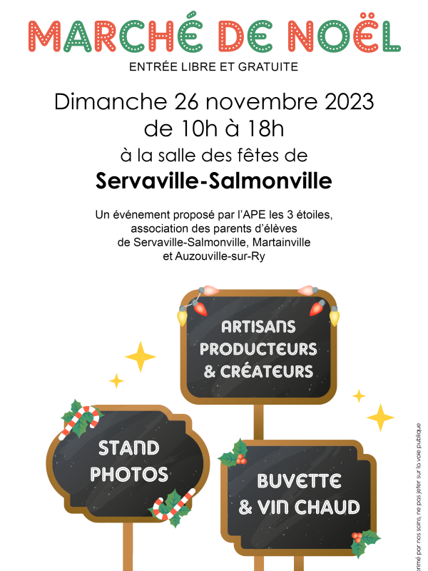 Marché de Noël à Servaville Salmonville, le dimanche 26 novembre 2023 de 10h à 18h.