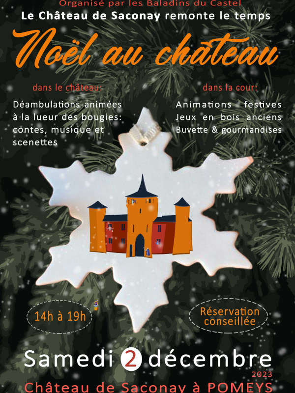 Marché de Noël dans la cour du château de Saconay. Le château sera décoré et animé avec du théâtre, des contes, de la musique et du chant, ce qui attirera du public.