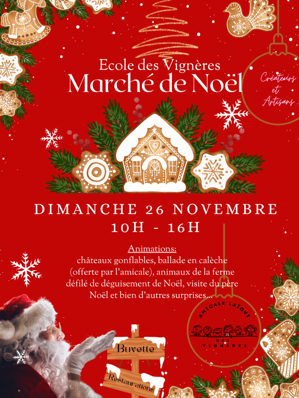 Marché de Noël écoles des Vignères, organisé par l'Amicale Laïque des Vignères.