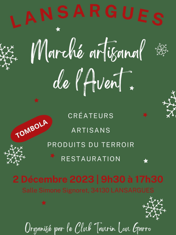 Le club taurin Lou Garro organise un marché artisanal de l’avent le samedi 02 décembre 2023 à Lansargues (salle Simone Signoret).
