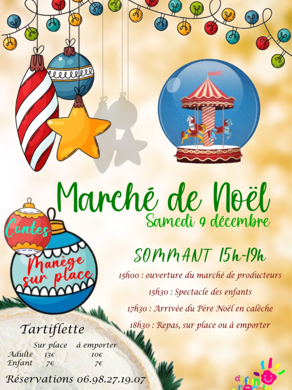 Venez goûter des produits gastronomiques et choisir vos futurs cadeaux au marché de Noël Du Fun à l'école qui se tiendra le samedi 9 décembre à partir de 15h à l'Auberge de Sommant.