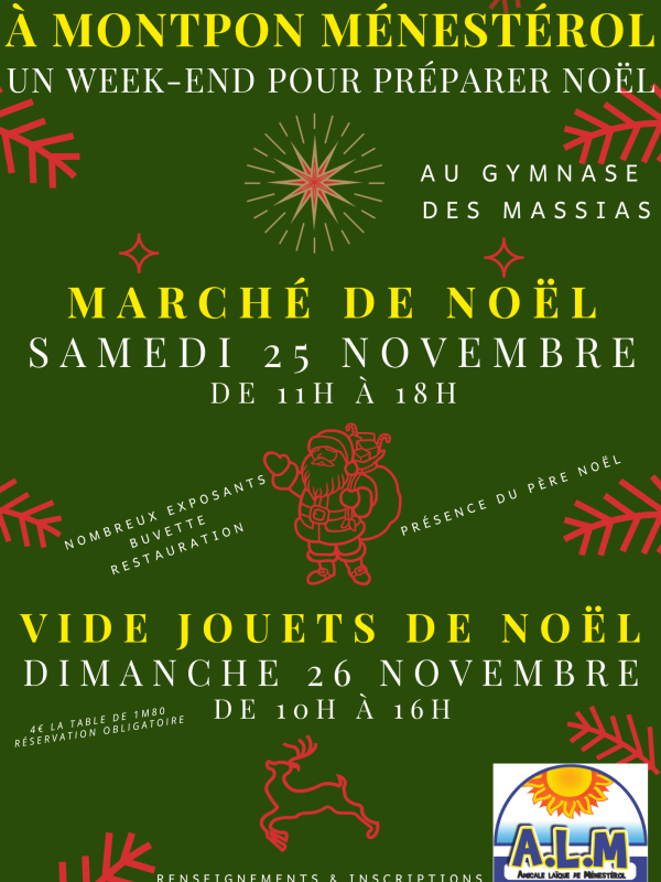 L'Amicale Laïque de Ménestérol est heureuse d'organiser son traditionnel Marché de Noël à Montpon-Ménestérol.