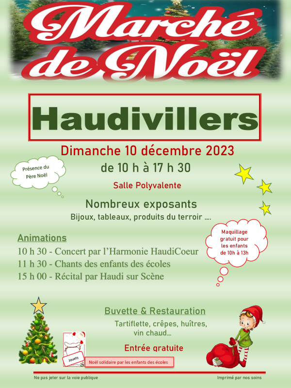 L'association HaudiCom&Fêtes organise le dimanche 10 décembre 2023 son 9ème marché de Noël où nous accueillerons de nombreux exposants : artisanat, bien-être, gastronomie, produits locaux, déco, ….
