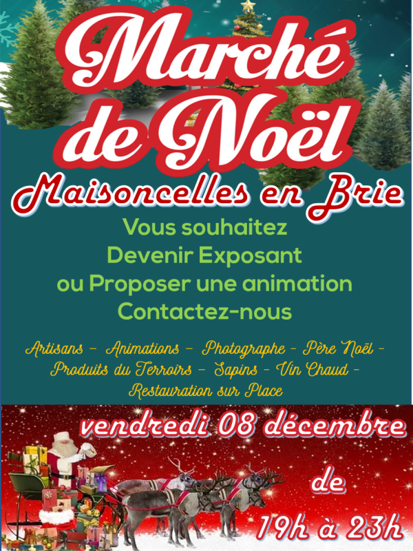 Marché de Noël 2025 de Maisoncelles en Brie - 77 Au programme :Animations pour enfantsSpectacle pour enfantsConcert de Gospel dans l’égliseVillage d’exposants en intérieur et en extérieur Foodtrucks sucré & salé pour tous les gourmandsBar... Localisation : 77580 MAISONCELLES EN BRIE