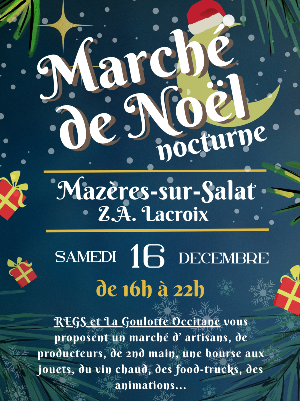 Vous êtes ici : Liste des marchés de Noël > Calendrier des marchés de Noël > Marché de Noël Nocturne à Mazères-sur-Salat 31