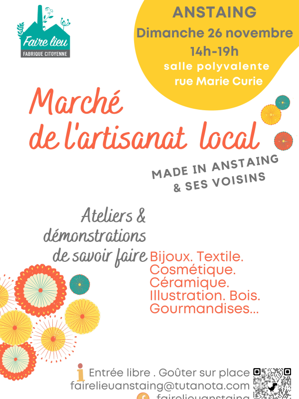Une 3ème édition placée sous le signe du savoir-faire et de la création: céramique, fleurs séchées, bijoux, illustration, textile, déco et autres gourmandises, le tout fait maison et avec passion! Au total, 17 artisans d’Anstaing et des alentours partageront leurs techniques lors de démonstrations tout au long de l’après -midi.