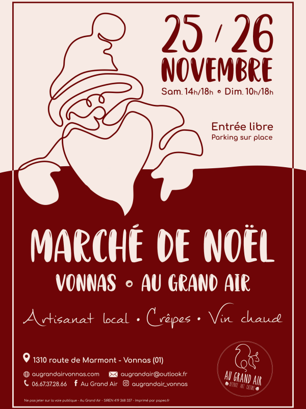 Vous êtes ici : Liste des marchés de Noël > Calendrier des marchés de Noël > Marché de Noël d'Au Grand Air (Vonnas)