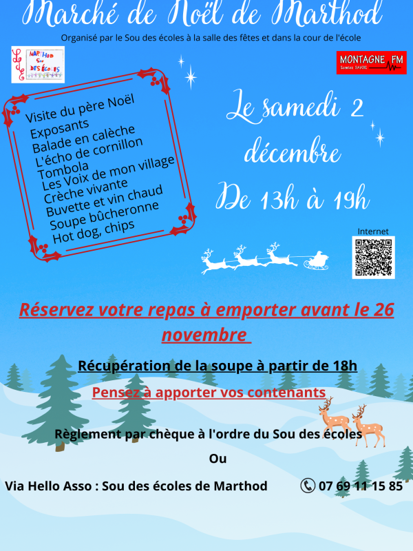 Venez découvrir les nombreux exposants de notre marché et vous pouvez également réserver votre soupe bûcheronne à emporter avant le 26 novembre.