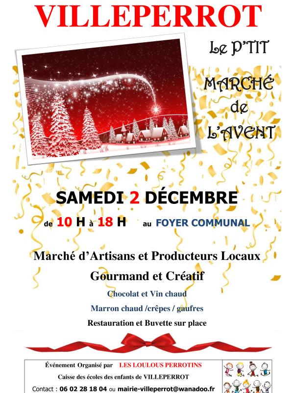 Vous êtes ici : Liste des marchés de Noël > Calendrier des marchés de Noël > Le P'tit Marché de l'Avent 2023 de VILLEPERROT 89