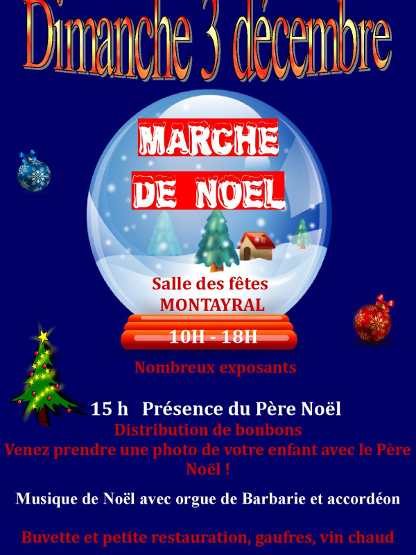 Marché de Noël 2025 d'Aiguillon (47) • Inscription obligatoire des exposants• Installation le samedi à partir de 7h30• Gardiennage dans la nuit de samedi à dimanche : pas besoin de démonter le samedi soir• Raccordement eau et... Localisation : 47190 AIGUILLON