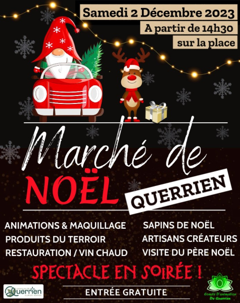 Le Marché de Noël de QUERRIEN 29310 se tiendra le 02 Décembre 2023 , vous y trouverez: