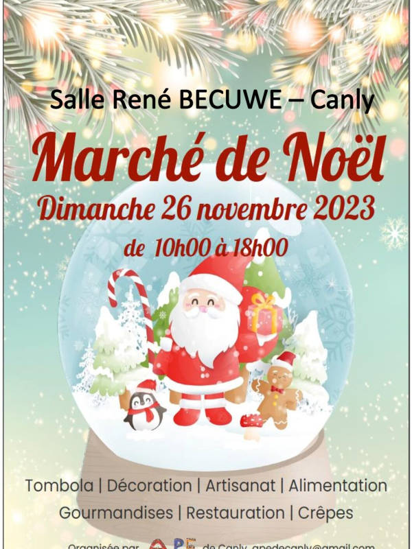 Marché de Noël à Canly le dimanche 26 Novembre 2023. Tombola, décorations, artisanat, alimentation, gourmandises, restauration, crêpes...