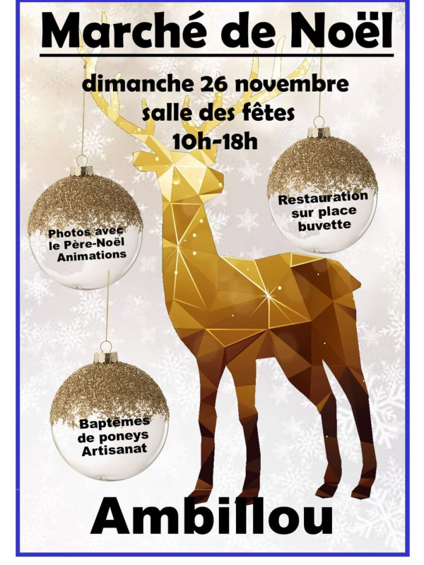Marché de Noël 2023 à la salle des fêtes d'Ambillou de 10h 18h.