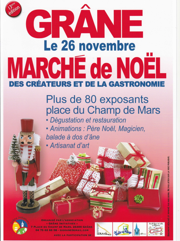 Marché de Noël Venez découvrir notre marché de Noël le samedi 13 décembre de 10h à 21h et le dimanche 14 décembre de 10h à 17h. A l'intérieur, vous trouverez des décorations de Noël , des parfums , des... Localisation : 26270 LORIOL SUR DRÔME