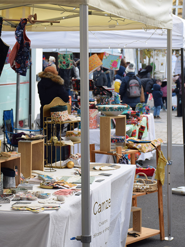 35 créateurs et créatrices à retrouver autour des halles, place Foch : vêtements, accessoires de mode, bijoux, maroquinerie, broderie, kits zéro déchets, décoration, affiches et illustrations, objets en chocolat…