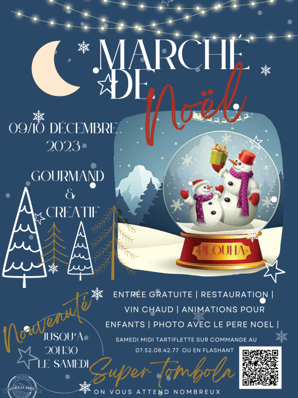 Organisé par le Goëlo HBC, environ 45 créateurs, artisans et commerçants locaux vous y attendront. Super Tombola de Noël avec en gros lots un ordinateur portable, une télévision, un cookeo et de nombreux lots surprises . Restauration et buvette sur place. Nombreuses animations pour les enfants tout au long de la journée(maquillage, contes de Noël, visite du père noël et photo etc.)