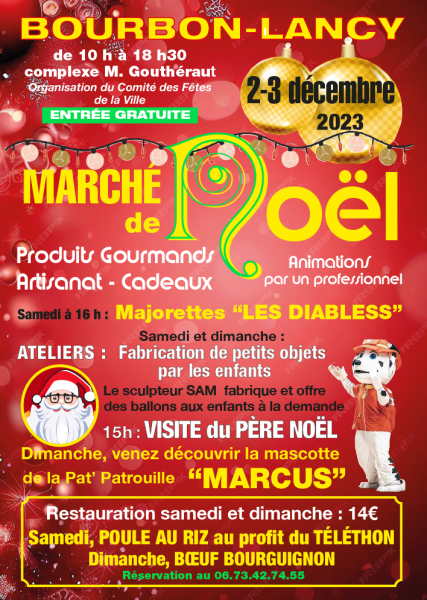 Vous êtes ici : Liste des marchés de Noël > Calendrier des marchés de Noël > MARCHE DE NOEL 2023 BOURBON LANCY