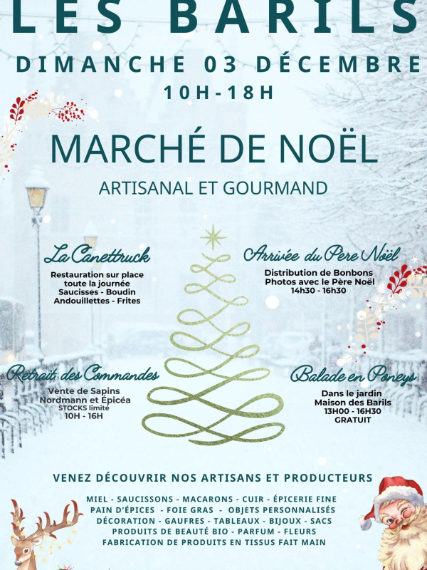 Les barils-loisirs vous invite à son marché de noël le dimanche 3 décembre 2023 de 10h00 à 18h00, rendez-vous pour une journée festive !
