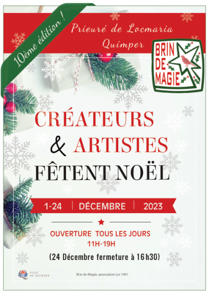 Marché artisanal. 20 créateurs locaux présents pour vous proposer : bijoux, déco, textiles, céramiques et bien d'autres choses. 7j/7j jusqu'au 24/12, 11h-19h. Gratuit. Contact : 06 62 28 69 87, 06 68 47 84 39, brindemagie29@gmail.com, http://brindemagie.fr