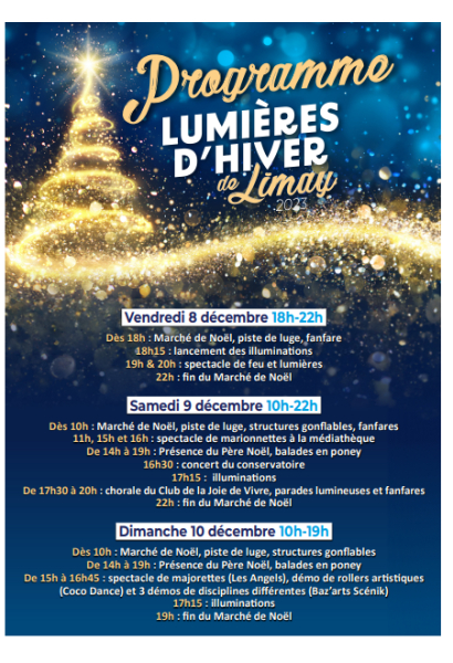Vous êtes ici : Liste des marchés de Noël > Calendrier des marchés de Noël > Lumières d'hiver de Limay