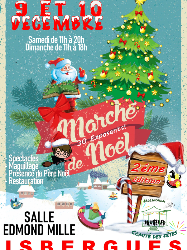 C'est ce weekend le marché de Noël du comité des fêtes de Molinghem. Le programme s'annonce très chargé dans la salle Edmond Mille de Berguette. Voyez ci dessous l'intégralité du programme!