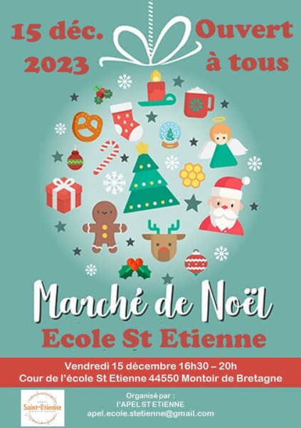 L'APEL de l'écoles Saint Etienne, à Montoir de Bretagne organise un marché de Noel dans la cour de l'école le vendredi 15 décembre en fin d'après midi.