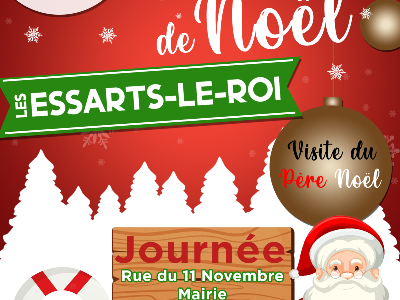 Venez participer au Marché de Noël des Essarts-le-Roi qui aura lieu les 14 et 15 décembre 2024, rue du 11 Novembre 1918 et en mairie.