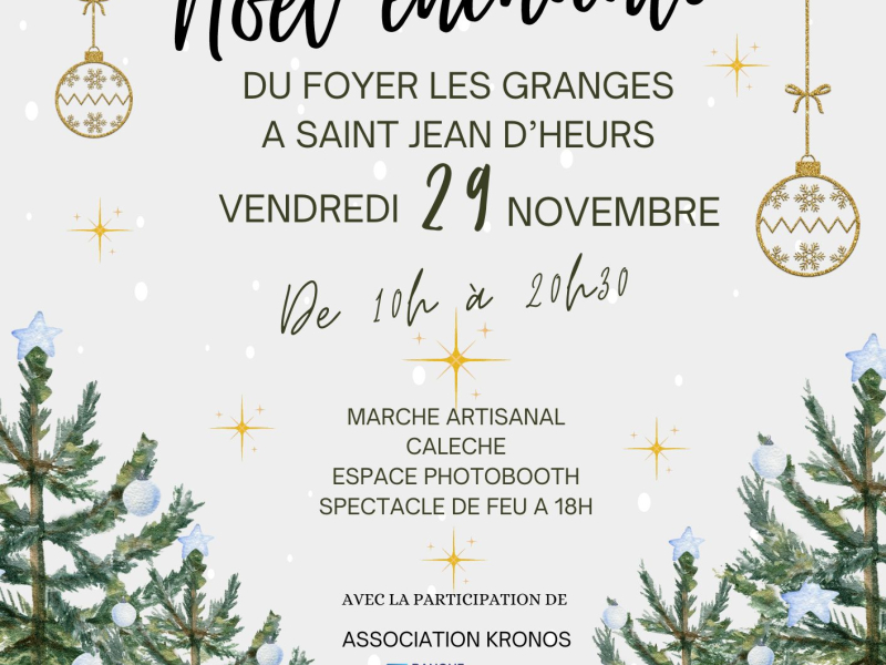 Le foyer ADAPEI les Granges organise son marché de Noël enchanté: marché de créateurs, calèche le matin (accès PMR), spectacle de feu de la compagnie Zoolians à 18h, photobooth.