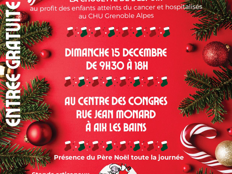 Marché de noël au profit de la chouette de l'espoir, pour venir en aide aux enfants hospitalisés au CHU des Alpes de Grenoble dans le service immuno -Oncologie pédiatrique.