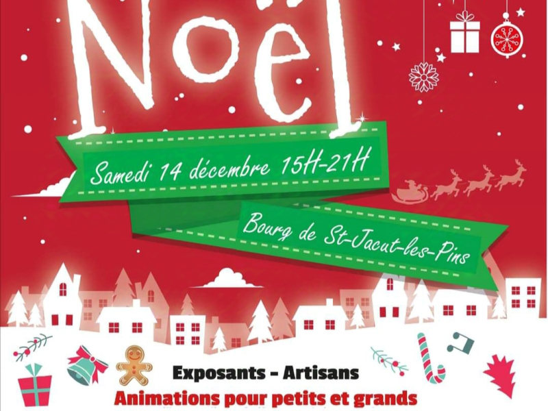 Marché de Noël Marché de noël dans le bourg de St Jacut les pinsJeux en boisChorale de noëlvenue du père noëlFood truckVin chaud, crêpeTombola Localisation : 56220 SAINT-JACUT-LES-PINS