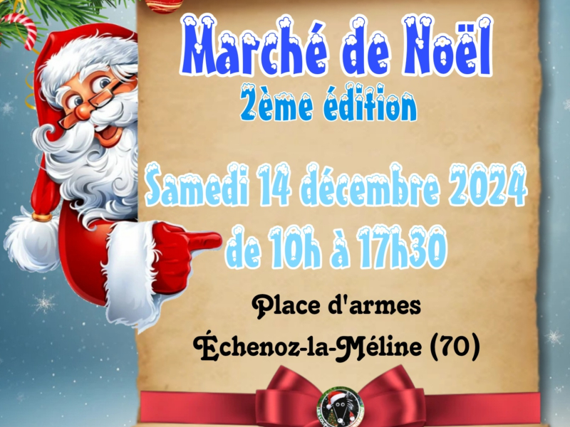 MARCHE DE NOEL 13/12/2025 ECHENOZ LA MELINE Marché de Noel d’Echenoz la Méline Samedi 13 Décembre 2025De 13h30 à 17h30ExposantsPère NoelJeux gratuit enfants + (Maquillage 1€ ,Choisi ton cadeaux 0,50cts & 1€) Défilé des pères... Localisation : 70000 ECHENOZ LA MÉLINE