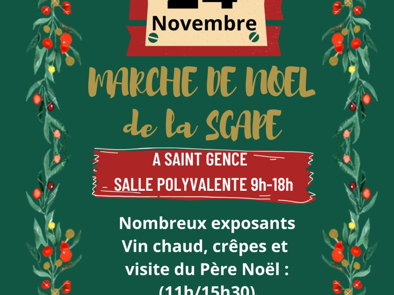 L'association des parents d'élèves de l'école de Saint-Gence organise son traditionnel marché de Noël le dimanche 24 novembre 2024 à la salle polyvalente de Saint-Gence, de 9h à 18h.