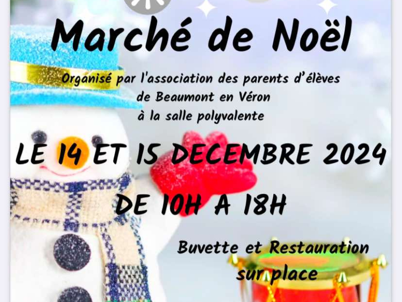 L'APE des écoles élémentaire " Le Pain Perdus" et maternelle " La Souris Verte" de Beaumont en Véron (37420) en Indre et Loire vous propose son traditionnel marché de Noël a la salle polyvalente, du samedi 14 décembre 2024 de 10H à 18H au dimanche 15 décembre 2024 de 10H à 18H.