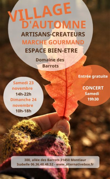 Le village d'automne revient pour sa seconde édition dans le cadre magnifique du Domaine des Barrots. Nous avons sélectionné les créateurs et producteurs locaux pour la qualité de leurs produits.
