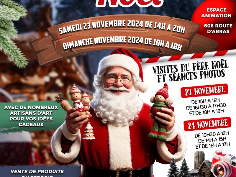 Une aire sera installée spécialement pour tous ces produits. Bien sûr, pour la joie des enfants et le bonheur des parents le Père Noel sera présent le samedi 23 novembre de de 15h à 16h, de 16h30 à 17h30 et de 18h à 19h. Le dimanche 24 novembre de 10h30 à 12h , de 14h à 15h , et de 16h à 17h. Un photographe sera à votre disposition pour des séances photos. Une maquilleuse pour enfants sera également dans la salle pour rendre ce marché de noël plus féérique pour les enfants. Comme vous le voyez, nous vous proposons un véritable festival de noël, et, nous comptons sur vous pour venir le découvrir les 23 et 24 novembre à la salle de l’Espace d'Animation Jeunesse.