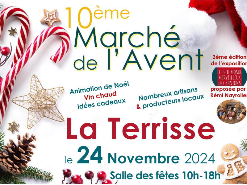 MARCHE DE L'AVENT le dimanche 24 novembre 2024 à la salle communale de La Terrisse de 10h à 18h. Produits artisanaux, Exposants