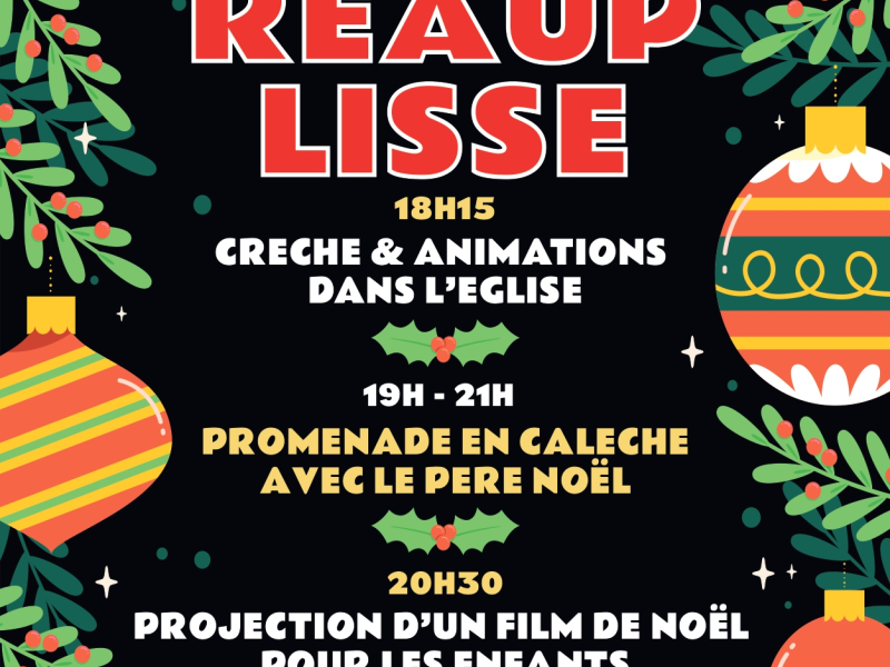 Crèche et animations dans l'église, promenade en calèche avec le père Noël, projection d'un film pour les enfants, jeux anciens, magicien... photos avec le père Noël sur un vrai traîneau!