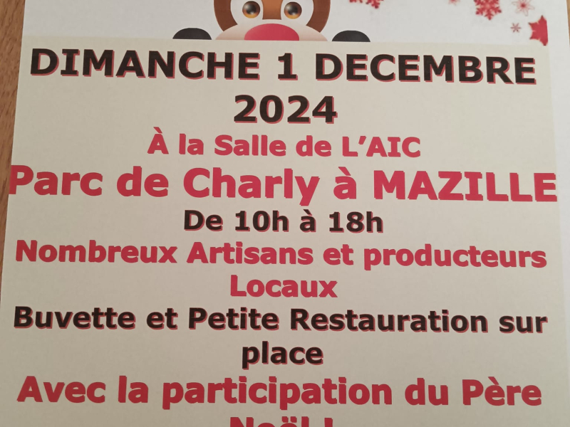 2ème Marché de Noël de l'Amicale Intercommunale de Charly, à Mazille. Une vingtaine d'exposants, Artisans, Créateurs, Producteurs locaux. Buvette et petite restauration sur place. Entrée gratuite