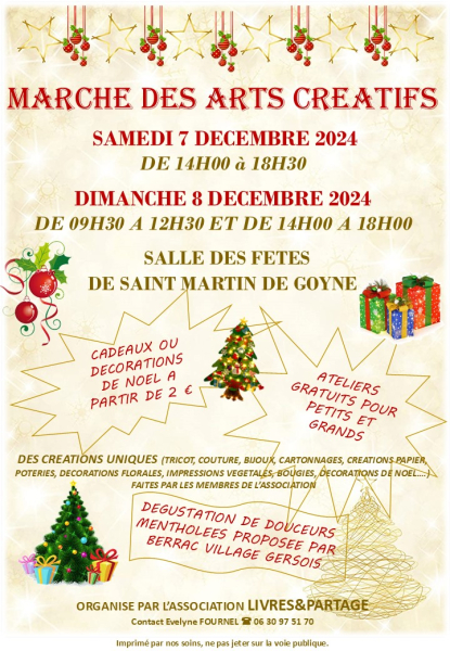 Vous êtes ici : Liste des marchés de Noël > Calendrier des marchés de Noël > MARCHE DES ARTS CREATIFS