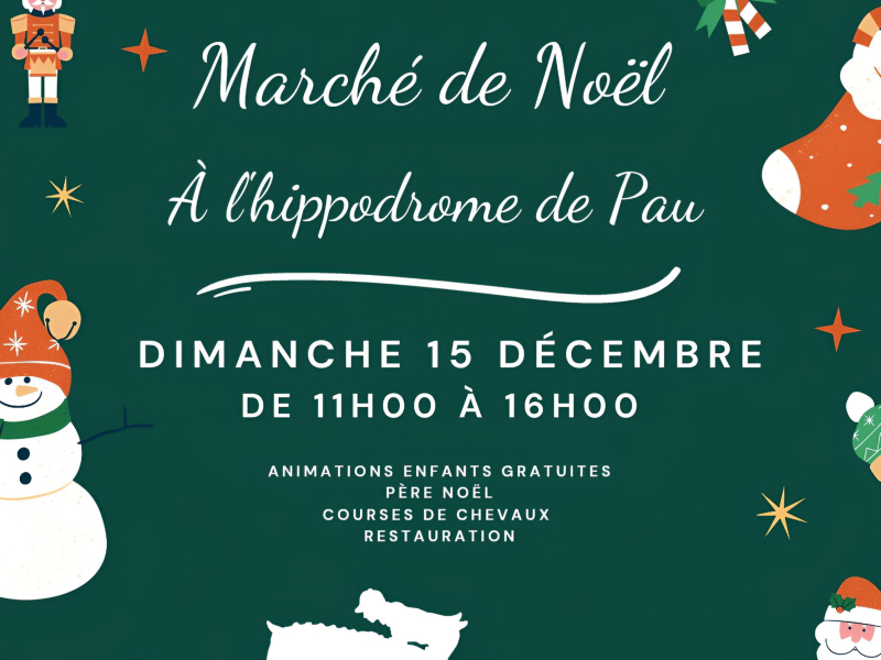 Nous organisons un marché de noël pour l'évènement "noël à l'hippodrome" sur place vous trouverez des exposants (bijoux, couture, gâteaux, prêt à porter, conserve…), des animations enfants gratuites (balade à poneys, pêche aux canards, château gonflable…), passage du père noël