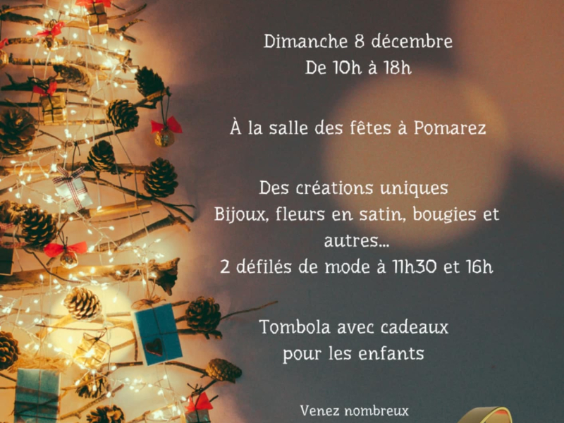Nous organisons une exposition de Noel à Pomarez le dimanche 8 décembre de 10h à 18h avec 2 défilés de mode.