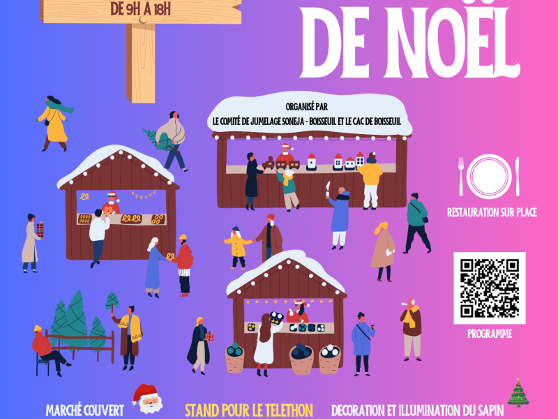 Le Comité de Jumelage Boisseuil - Soneja (Espagne) et le Centre d’Animation Communale co-organisent avec l'aide de la municipalité le marché de Noël le samedi 14 décembre 2024, dans le bourg de Boisseuil (place Soneja).