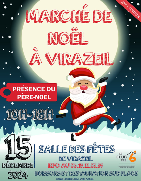 Rejoignez-nous le 15 décembre à Virazeil pour une journée festive placée sous le signe de la magie de Noël ! Venez découvrir notre marché de Noël, un lieu enchanté où petits et grands pourront plonger dans l’ambiance chaleureuse des fêtes de fin d'année.