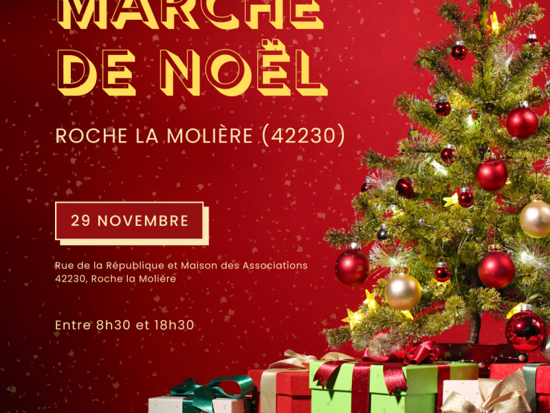 Le marché de Noël se tiendra en plein centre-ville, Rue de la République et Maison des Associations, à Roche la Molière, le 29 Novembre toute la journée.