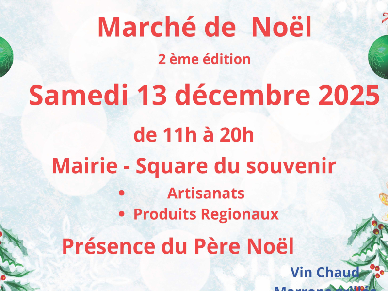 Marché de noël 2025 de Chaponost 69630 Madame, Monsieur,Après confirmation par notre Municipalité le Marché de Noël aura lieu leLundi 8 décembre 2025 à Chaponost Place Georges ClémenceauEn cas de mauvais temps le Marché sera... Localisation : 69630 69630 - CHAPONOST