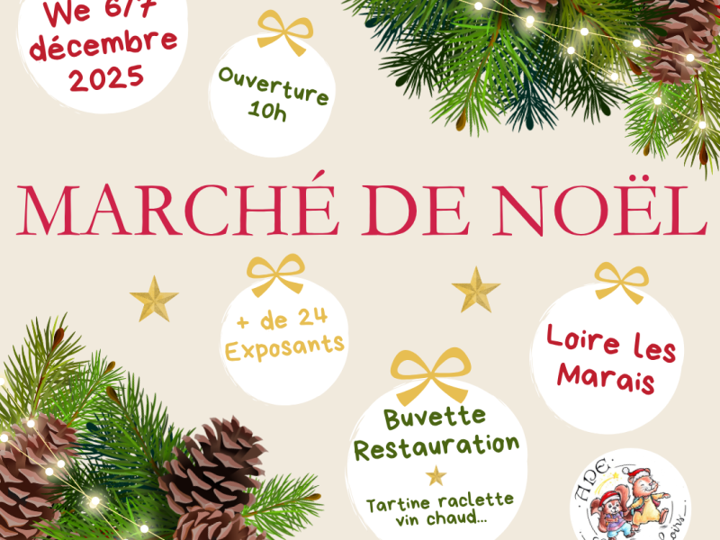 Marché de Noel Marché de créateurs et prestataire locauxAteliers pour les enfants sur le thème de NoelPhoto avec le père NoelRestauration sur place Localisation : 17230 ST OUEN D'AUNIS